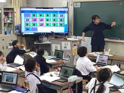 ICTを活用しながら、全画面を開きお互いの意見を見える化します。そして自分が選んだ1枚の理由を友達やみんなと話し合いながら考えていきました。