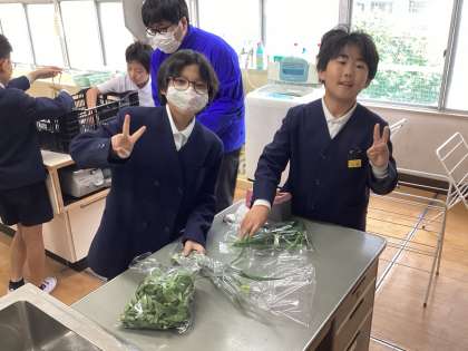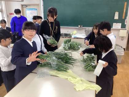 子どもたちは、午後からのイオンそよらでの野菜販売に向けて、とれたて野菜を収穫しています。