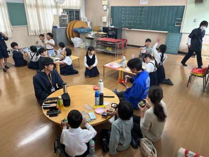 全校遠足が延期になり、今日のお昼ご飯はそれぞれの学年がそれぞれの場所でランチタイムを過ごしました。