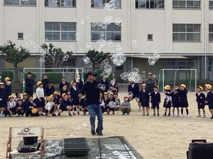 幼稚園児や支援学校の生徒さんたちも参加され、運動場にバブルの華が咲き乱れました!