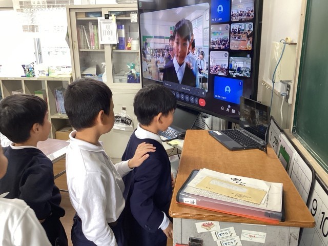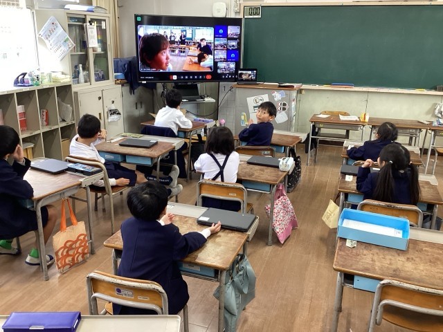 体育館が作品展のため使用できないので、各教室オンラインで話し合いがスタートしました。そして学年発表へリレーしていきました。それぞれの学年が自分たちが思った未来について語ります。