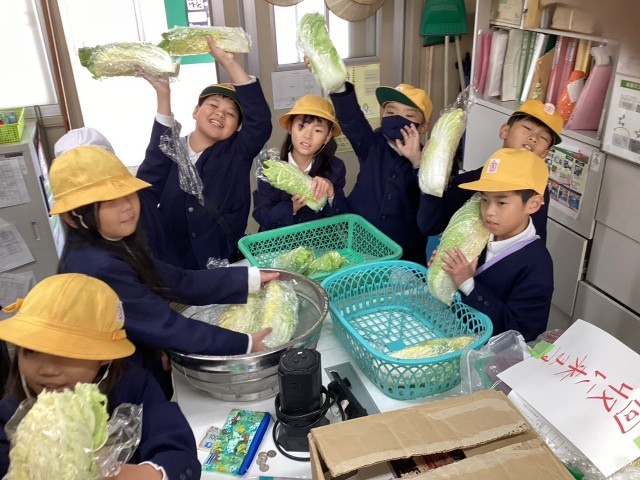 職員室に帰ってきて「お取り置きもの」の野菜を職員室チームのみんなに売り込む子どもたち!子どもたちの何とも言えない満足げな笑顔が印象的でした。みんなよくがんばったね。