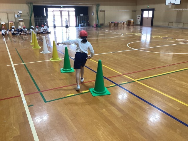 2年生が体育館で「サーキット運動遊び」をしていました。