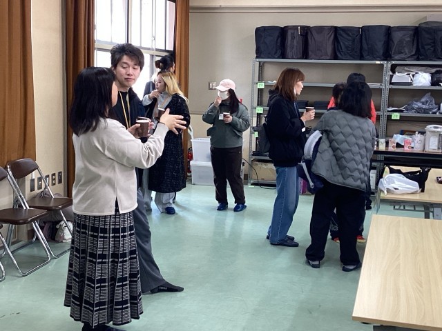 PTAの協力を得てお菓子と飲み物を用意し、サポーターのみなさんが集まりました。冒頭に1年間のお礼を伝え、その後はざっくばらんにおしゃべりしたり食べたり飲んだりして親睦を深めました。