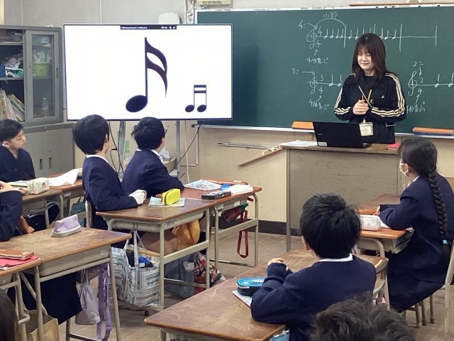 子どもたちは画面に映る音楽の記号の意味を確かめ合っていました。