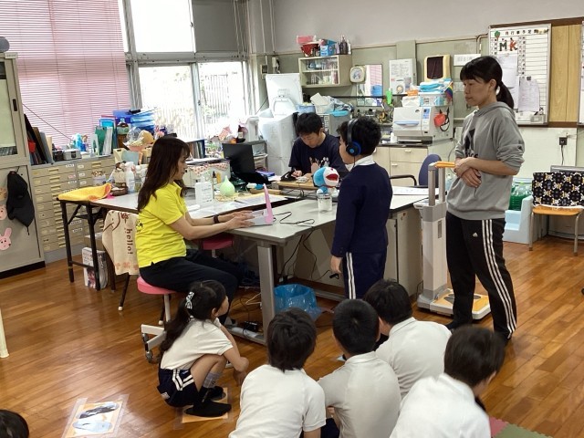 【3年生】保健室での聴力検査:静かに集中!