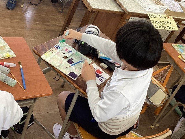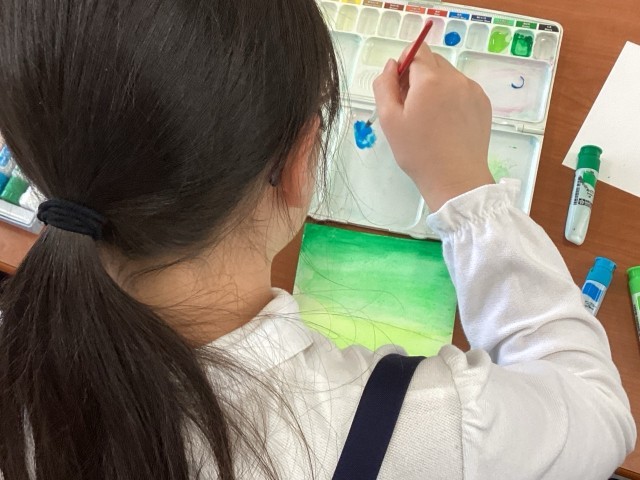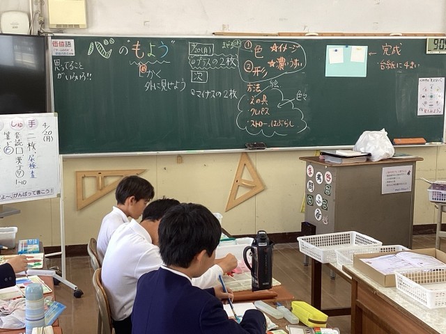 グラデーションをきれいに作る子や、独特の形を描く子など、教室はまるで小さな芸術家たちの集まり。