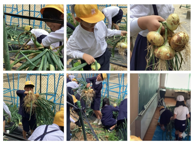 3・4・5年生 土の恵みに感謝。玉ねぎ収穫を通して
