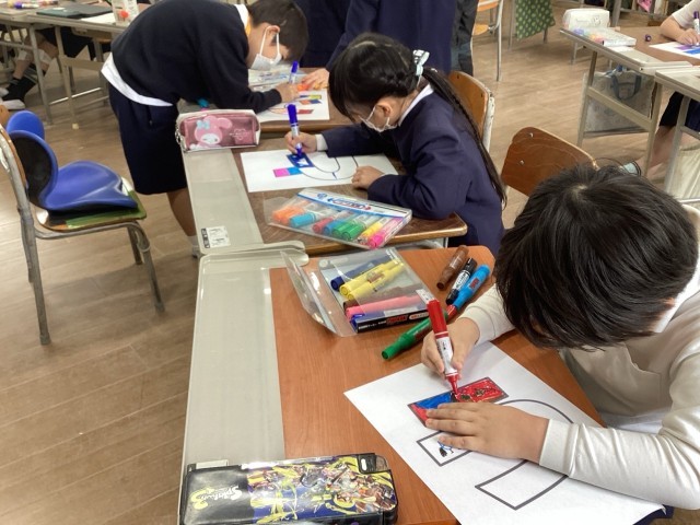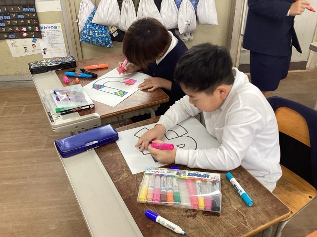 子どもたちは「ありがとう集会」に向けてメッセージボードを描いていました。