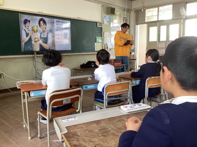 4年生の担当教員が国際理解教育の一環として全学年に入って飛び込み授業をしています。