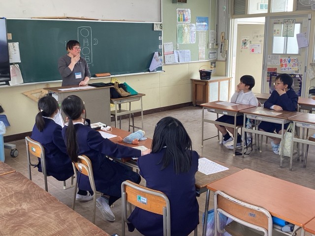 4年生の担当教員が国際理解教育の一環として全学年に入って飛び込み授業をしています。