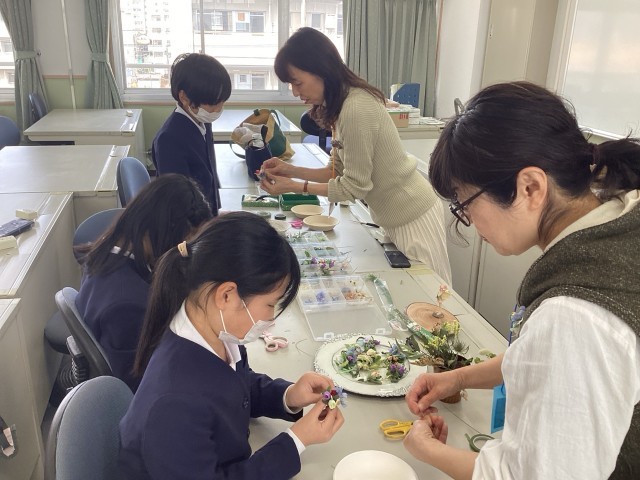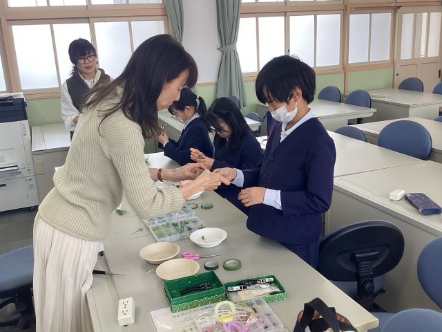 長原小スクールサポーターの「妖精のブーケ、ブローチ作り」