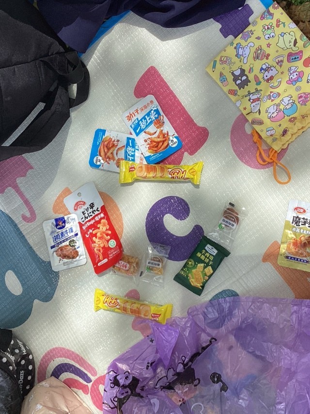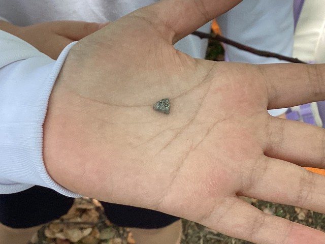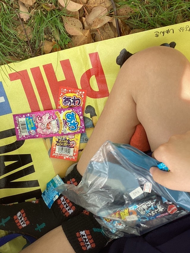 お弁当の後は、おやつタイムです。日本のお菓子だけでなく、世界のいろいろなお菓子が登場し、国際色豊かなお楽しみタイムになりました。「初めて見た!」「これ、おいしそう!」と、お菓子をきっかけに会話が弾み、班の絆もさらに深まったようです。青空の下で食べるおやつは格別の味でした。