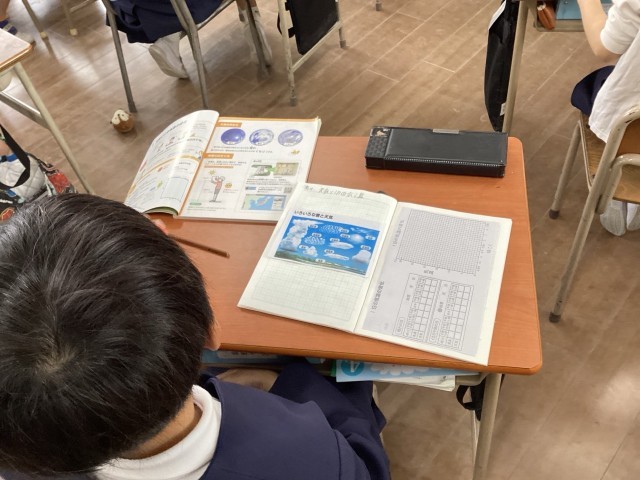 「晴れの日と曇りの日、気温の上がり方は同じかな?」 4年生の子どもたちは今、教科書の資料をじっくり読み解きながら、天気と気温の関係について考えています。