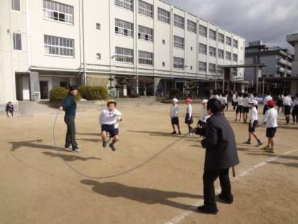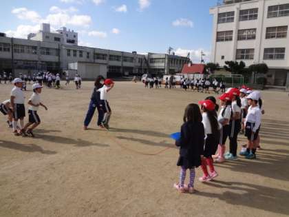 クラスでもなわとびをしているためか、1年生の大縄の跳び方もとても上手になってきています。