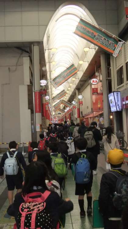 今昔館を出て天神橋筋商店街を通って扇町公園に行き、お弁当を食べました。 -