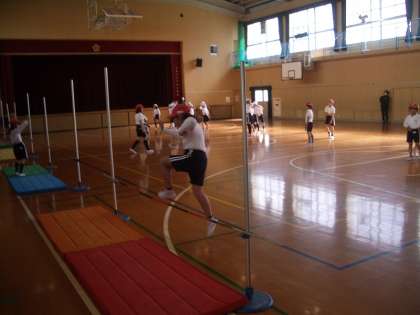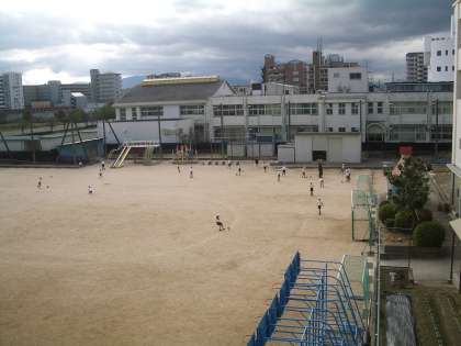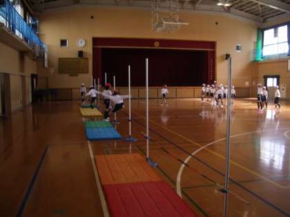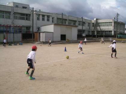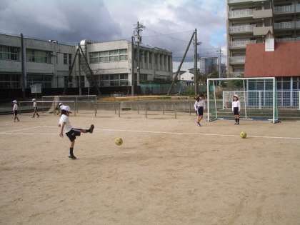 4年生の体育では、子どもたちが運動場を何周も何周も走っていました。