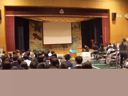 11月26日(火) 平野特別支援学校の文化祭予行を2・5年生が鑑賞させてもらいました。長吉第二幼稚園の園児もいっしょです。出演する特別支援学校の子ども達は自分のできる力を精一杯だして演技を見せてくれました。文化祭は30日(土)ですが、長原の6年生の子ども達はエンディングテーマを一緒に歌って録音し、声の友情出演をします。