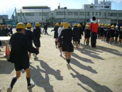 11月22日(金) 12月よりの暖房開始を目前にひかえ、理科室から火災が発生したという想定で避難訓練を実施しました。3分あまりで全員運動場への避難を完了しました。口をハンカチなどでふさいで静かに行動できており、とてもすばらしい練習になりました。これを機会に教職員でも緊急事態に備えての打ち合わせを行いました。