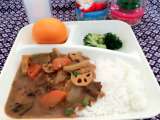 12月19日(月) 冬野菜のカレーライス ブロッコリーのサラダ みかん 牛乳...