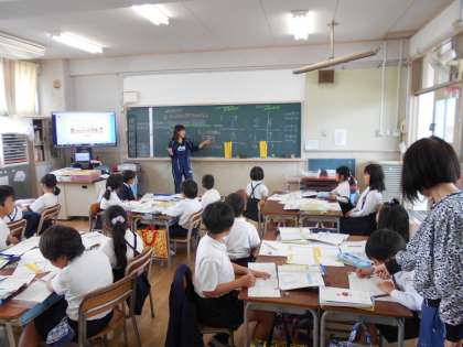 ケニヤ、中国、ドイツ…いろんな国の子どもたちが英語で自己紹介するビデオを見て、どの国の子どもかを答えていきます。