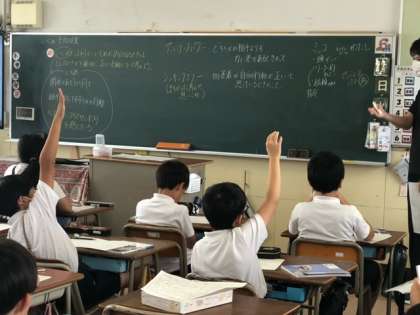 自分からどんどん手を挙げる子どもたち!そして、友だちの意見にも同じです!違います!付け足しです!とハンドサインで積極的に知らせる子どもたち。