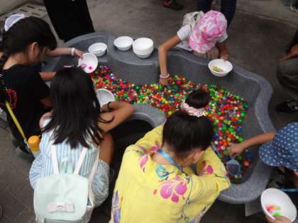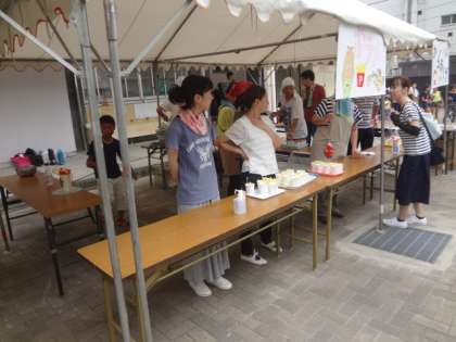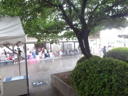 子どもたちが「プール水泳参加カード」のチェックをしてもらうため、受付に並んでいます。今日は参加が少なかったので、明日の最終日はできるだけたくさん参加してほしいです。