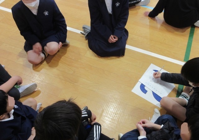 児童集会がありました。今回は、学校クイズでした。「児童の人数は?」「先生の人数は?」「廊下の長さは?」「創立何年?」などの問題に子どもたちは、縦割り班で協力しながら、いっしょうけんめい答えを考えていました。意外と知らない学校のことを楽しみながら知ることができました。