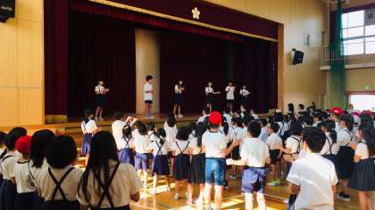 マイク無しでも講堂に響き渡る声で言う集会委員。素敵でした!