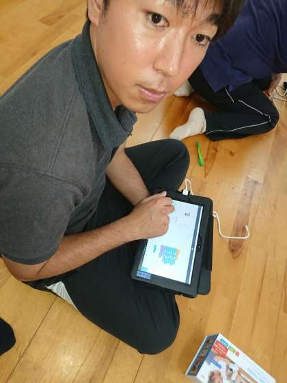 6月4日(火)の放課後、ロボットカー研修会を行いました。プログラミング教育として四年の児玉先生が説明し、喜多先生が進行しました。