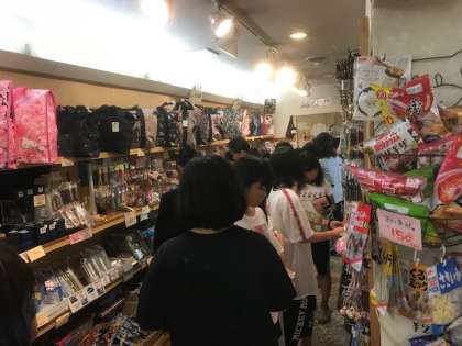 渡す人のことを思い浮かべながらおみやげを選んでいます。買いたいものは色々あるけど、予算と相談しています。