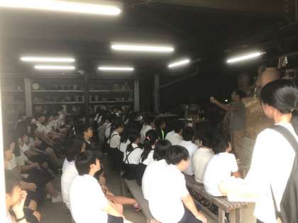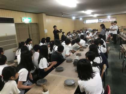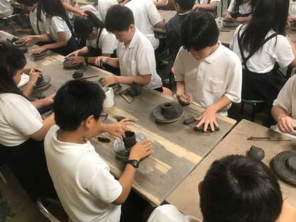 信楽焼について学習した後、オリジナルの作品を作りをしています。この町では1年間で10万匹のたぬきを作っているそうです。