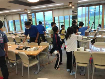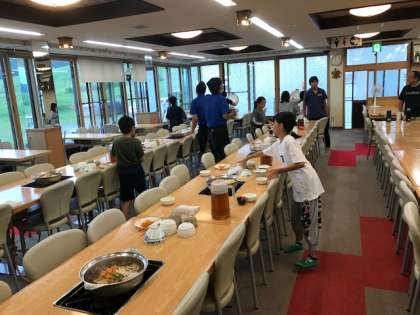 食事係が夕食の準備をしてくれています。
