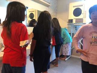 顔を洗ったり、歯を磨いたりして、朝の準備を始めています。