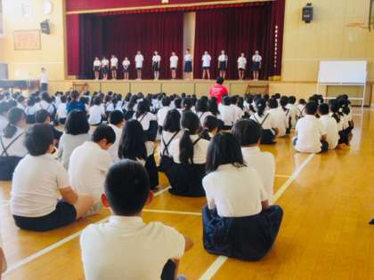 月曜日のお休みが続いたので、1ヶ月ぶりくらいの全校朝会でした。