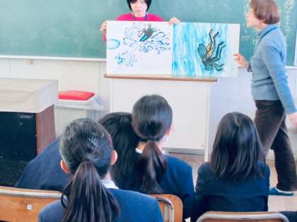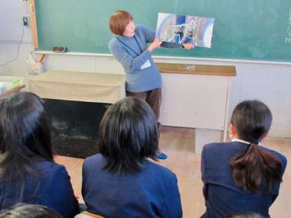 平野図書館から読み聞かせボランティアの方が来てくださり、5・6年生に絵本や紙芝居を読み聞かせしてもらいました。