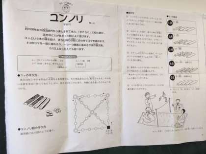 4本の棒を投げ、表と裏の数でコマを進める数が決まります。みんな夢中になって楽しんでいました。