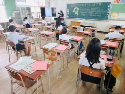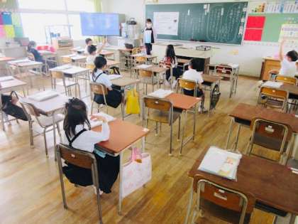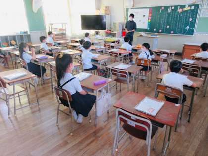 子どもたちは、学校生活についての話を、いつになく真剣な表情で聞いているようすでした。