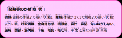 * 発熱やかぜ症状が見られる場合は、すぐに学校にご連絡ください