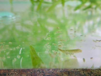 水槽の前を通ったとき、ふとそこの方を見ると、小さな丸いものが、、、