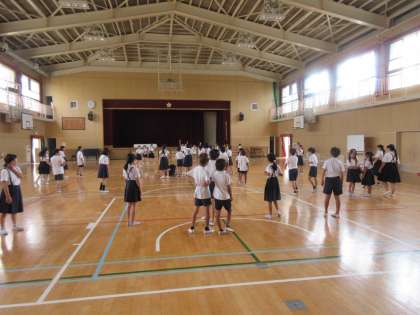 工事で運動場が使えないため、休み時間は学年順に講堂を使用しています。
