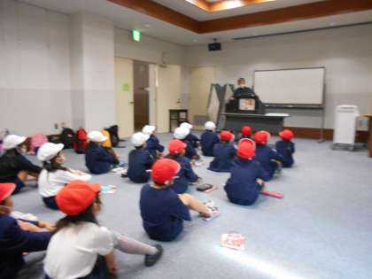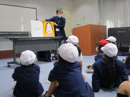 平野図書館では、館内の方に貸し出しカードの話を聞いたり、読み聞かせをしてもらったり、質問をしたりと、意欲的に学習していました。