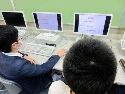 パソコンクラブでは、この日までにプレゼンテーションのソフトを使ってクイズ作りをしてきました。答えを決めて、ヒントを3つ考えます。
