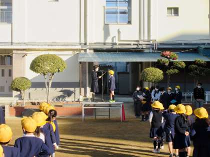 今日の全校朝会では、保健委員会からハンカチを忘れずに持ってきてるクラスへの表彰がありました。4年2組の代表の子どもたちが賞状を受けとりました。