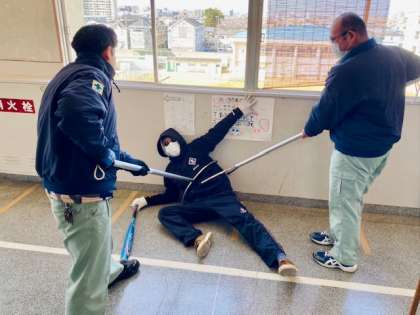 今日は、不審者が校内に侵入してきた場合を想定した避難訓練を実施しました。