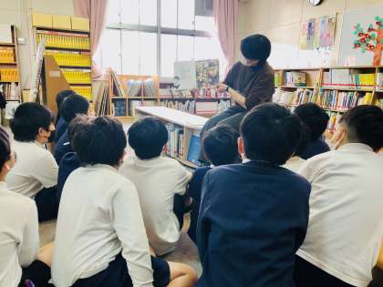 水曜日は、図書支援の先生が来てくださり、1〜3年生に本の読み聞かせをしてくださいます。