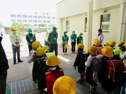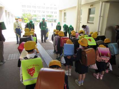 今日は、子どもたちの登下校を見守ってくださる地域の方々が学校へ来てくださり、1年生のみんなにお話していただきました。