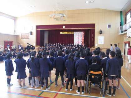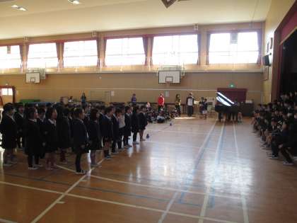 1年生〜3年生はお祝いのことばと歌を発表しました。