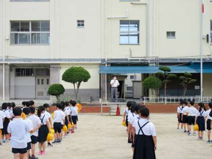 本日は、曇り空のおかげもあり、涼しい全校朝会でした。