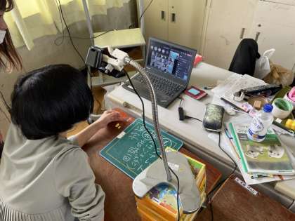 臨時休業中、午後から3年生はオンラインで健康観察や漢字の学習などを行いました。